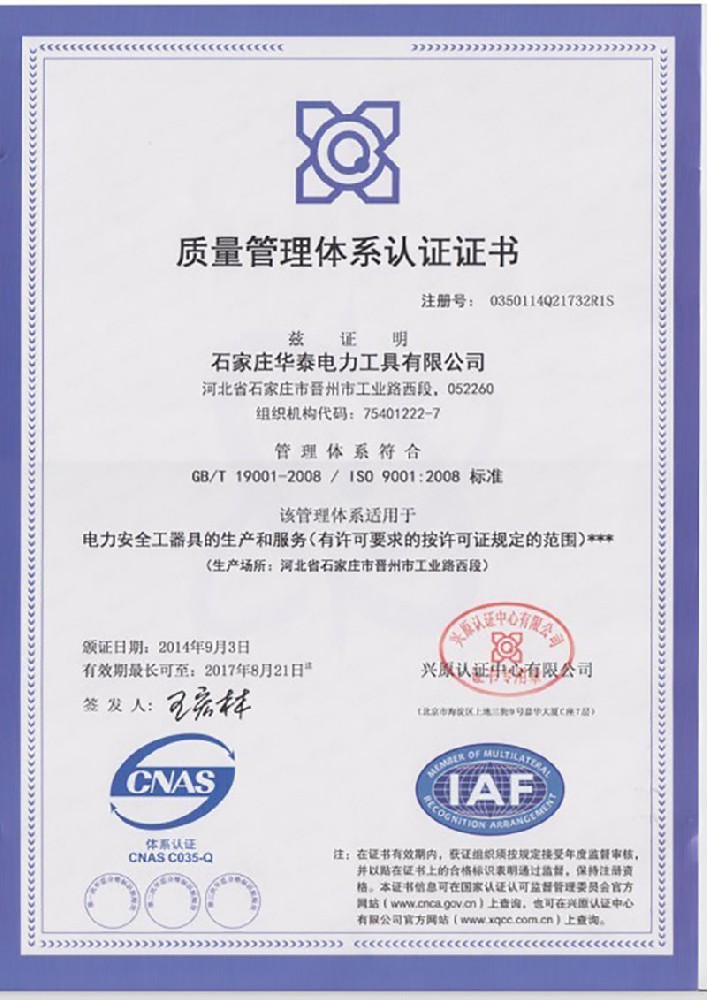 質量管理體系認證證書