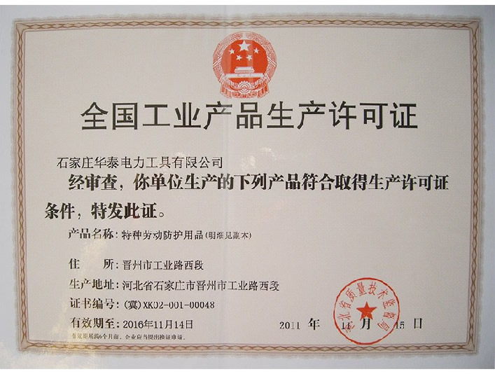 特種勞動防護用品安全標志證書